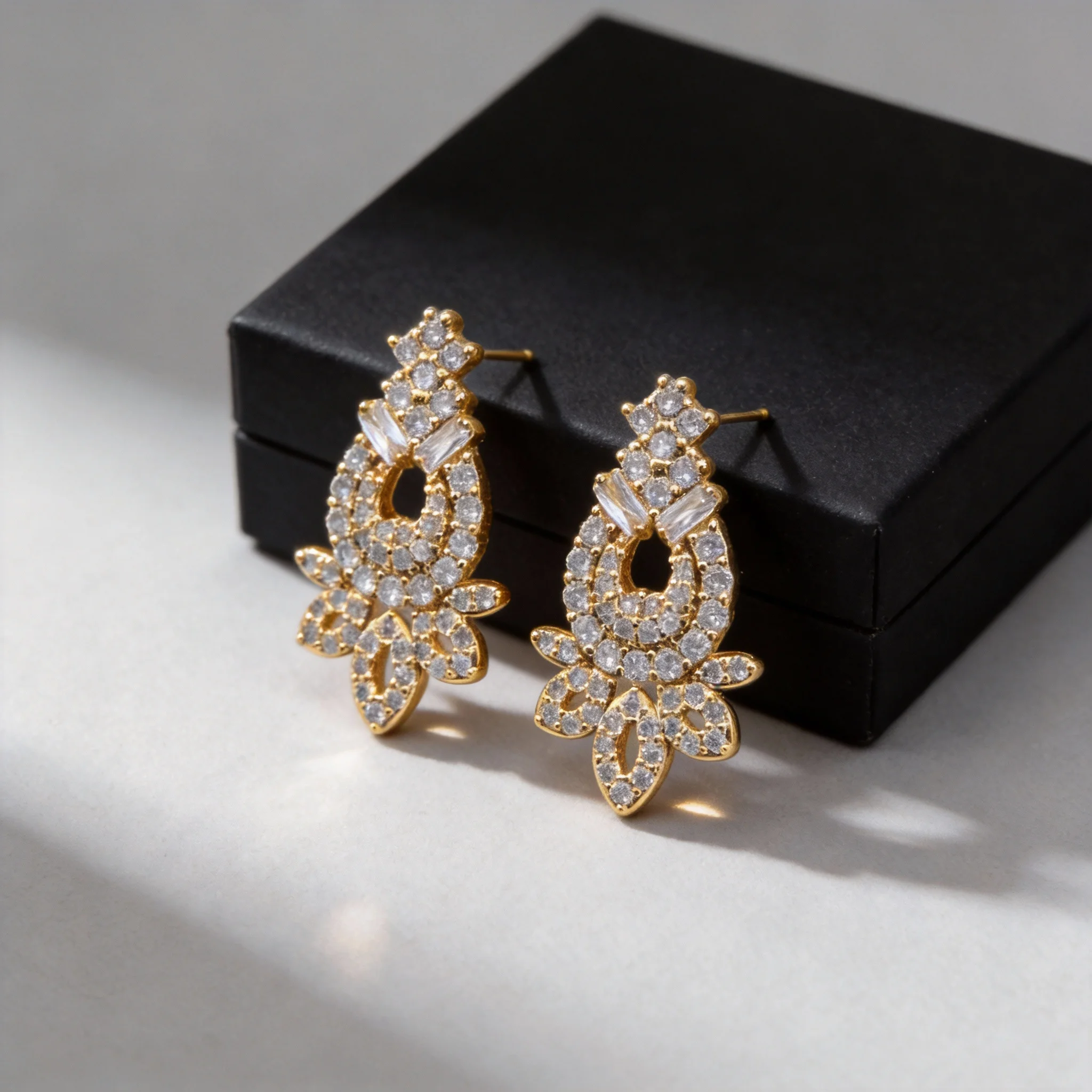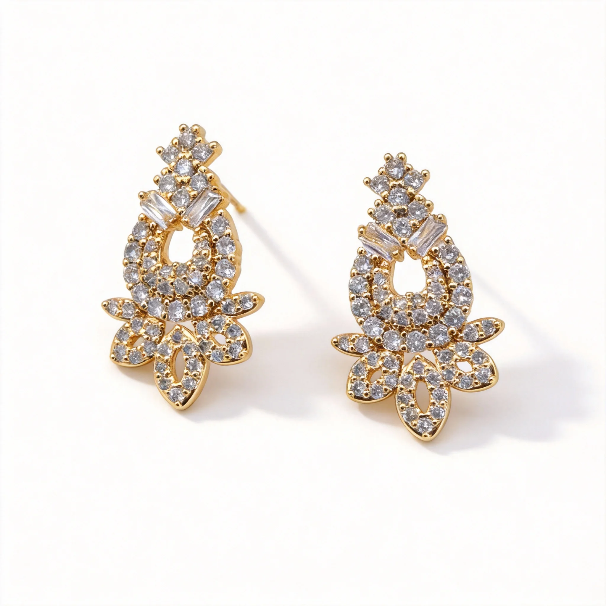 Inspired by floral and leaf motifs, these earrings feature full pavé cubic zirconia and an electroplated base, available in gold and silver finishes. The vintage, three-dimensional design exudes luxury, making them a versatile statement piece for banquets, dates, and daily wear.