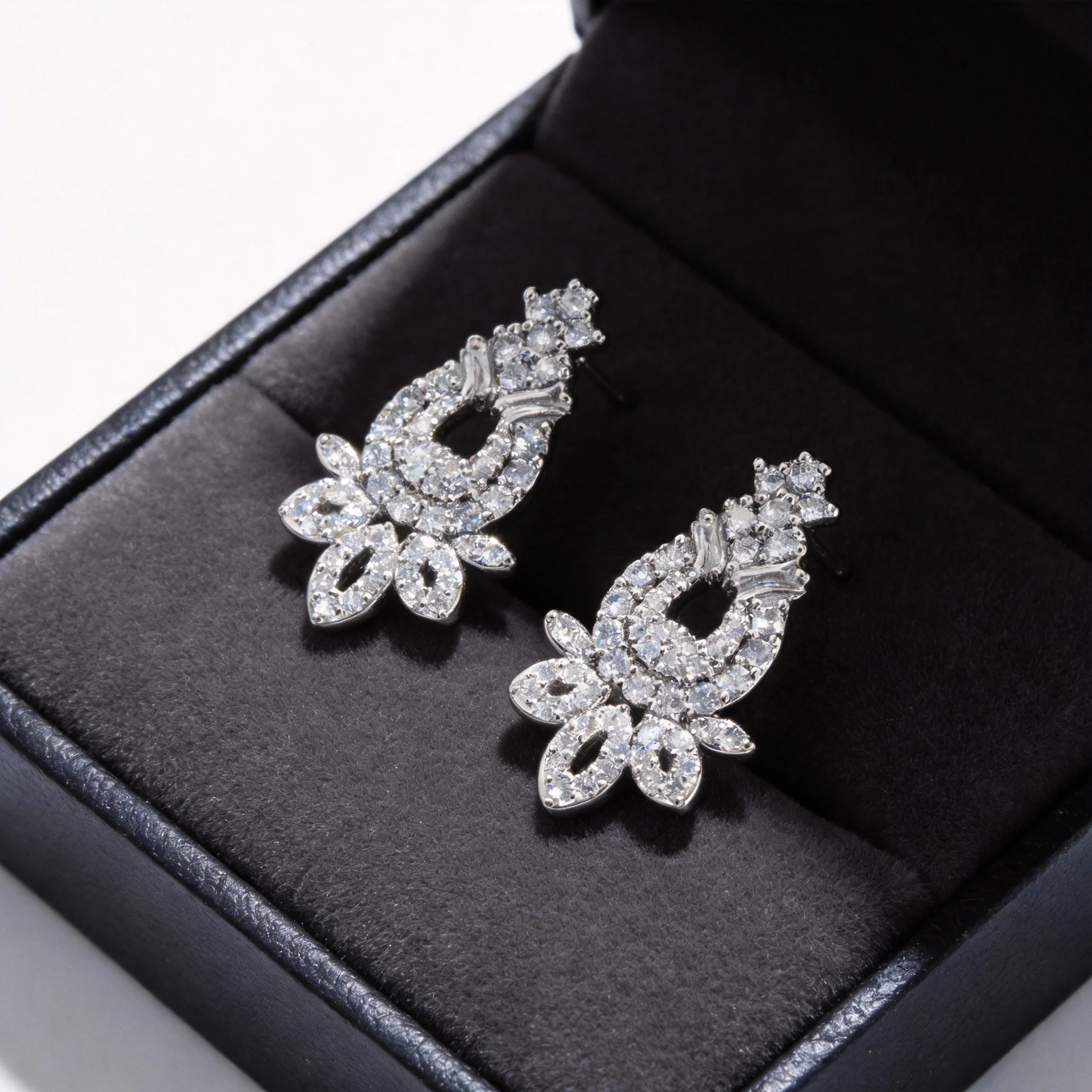 Designed with floral and leaf motifs, these earrings feature full pavé high-clarity cubic zirconia that sparkles brilliantly in the light. The gold finish offers warm luxury, while the silver finish delivers cool elegance, complementing various styles and skin tones.